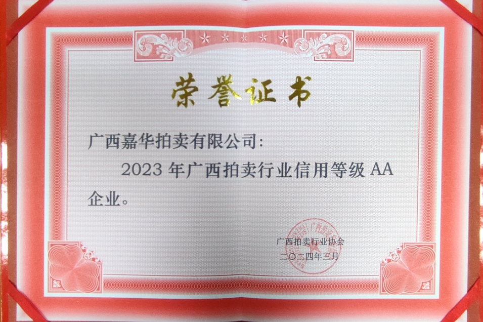 廣西嘉華拍賣(mài)有限公司于2017年12月由柳州市嘉華拍賣(mài)有限公司更名而來(lái),原柳州市嘉華拍賣(mài)有限公司的